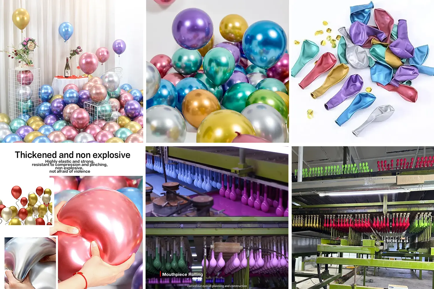 Gerai žinoma gamykla: priima modernų gamybos režimą ir investuoja į kelias visiškai automatines balionų gamybos linijas, kiekvieną dieną sukuriant daugiau nei milijoną aukštos kokybės 10 colių „Chrome“ latekso balionams, visiškai garantuodami stabilią ir laiku pateiktą didelių tomų užsakymų pristatymą.