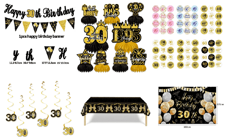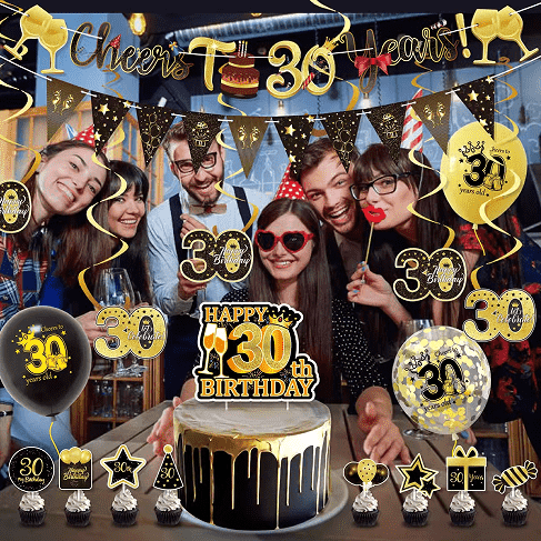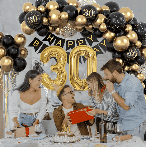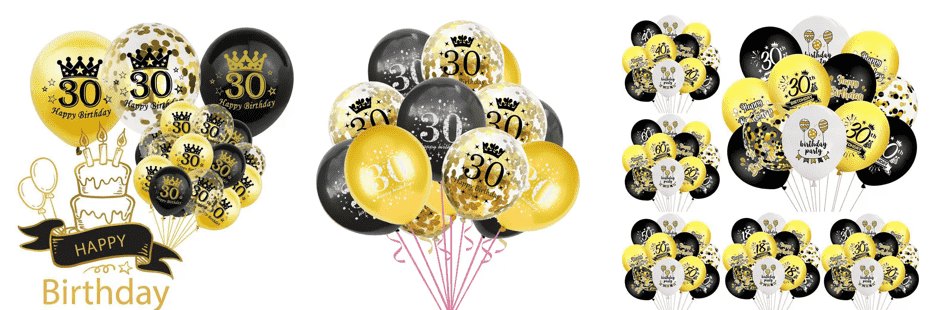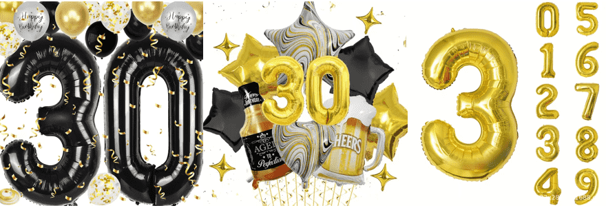 30-ojo gimtadienio balionų gaminiai yra dekoratyviniai elementai, specialiai sukurti švęsti 30-ąjį gimtadienį, įskaitant