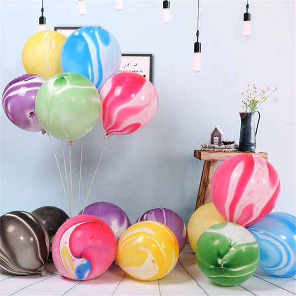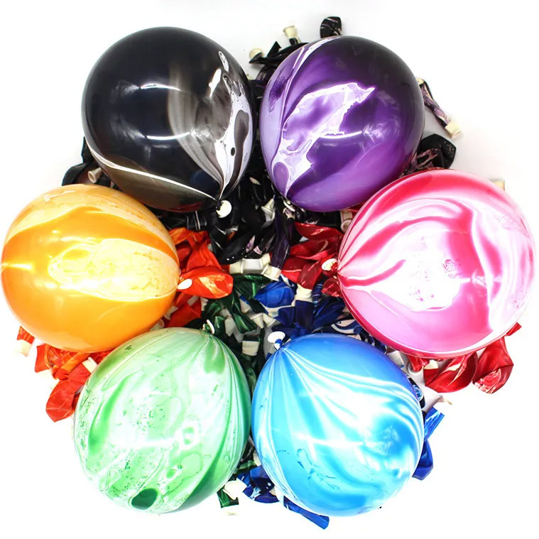 Agato latekso balionas, pagamintas „NiuN®“ balionų gamyklos, yra pagamintas iš aukštos kokybės latekso, kuris yra patvarus ir gražus, neturi ypatingo kvapo ir yra saugesnis naudoti, todėl šeima ir draugai yra labiau tikri. Latekso balioną lengva susieti, ilgą laiką gali išlaikyti išpūstą būseną ir nėra lengva sprogti. Šis agato latekso balionas yra 7 spalvų, kurios yra mišrios spalvos, juodos, raudonos, violetinės, mėlynos, žalios ir geltonos, o dydžiai yra 10 colių ir 12 colių. Mes gaminame 100 vienetų agate latekso balionus maiše. Jei turite kitų kiekio reikalavimų, mes taip pat galime pakoreguoti kiekvieno agato balionų maišo kiekį. Marmuro agato latekso balionai yra dažniausiai pasitaikantys balionai ir gali būti naudojami daugeliui dekoratyvinių progų, kad jūsų vakarėliui būtų suteikta džiaugsminga atmosfera.