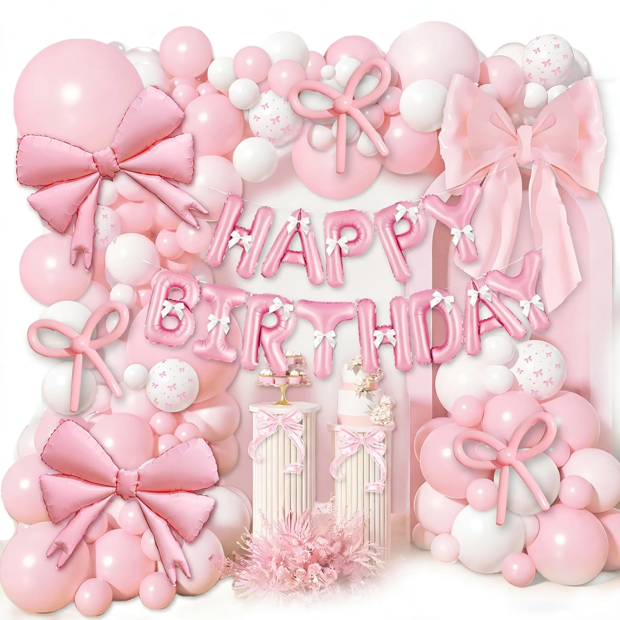 Šį rinkinį sudaro 5 colių, 10 colių, 12 colių ir 18 colių matinis kūdikių rožinis balionas, 5 colių, 10 colių matinė balta spalva, folijos rožinis lankelis, matinis kūdikių rožinis 260 ilgio balionas, juostelė, klijų taškas ir baliono dekoravimo juostelė.