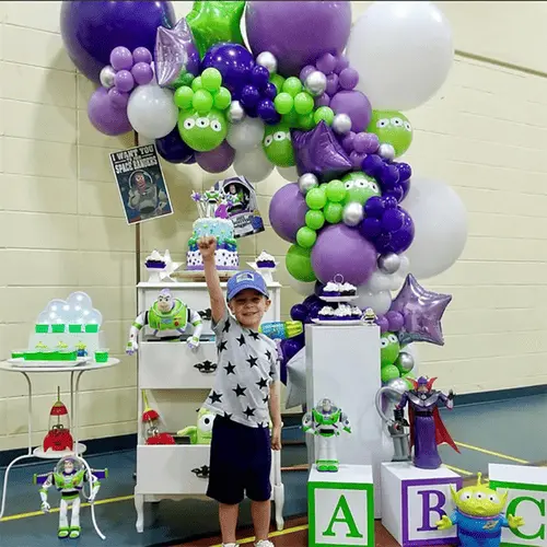 Buzz Lightyear balionų arka tinka daugeliui progų. Tokie kaip gimtadienio vakarėlis, festivalio vakarėlis, kūdikių vakarėlis ir pan. Atsižvelgiant į platų programų spektrą, jums nereikia jaudintis dėl pardavimo problemų.