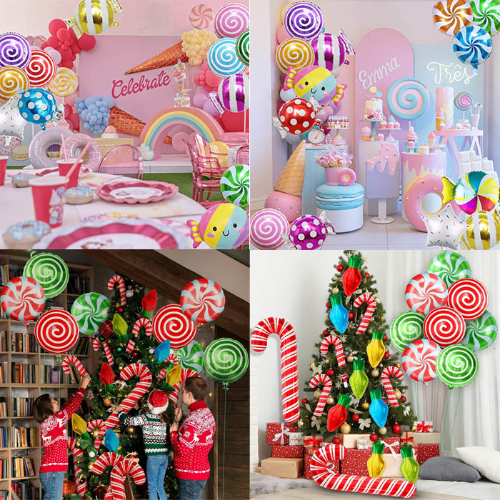 Saldainių serijos folijos balionai šiuo metu yra įvairių spalvų ir stilių, sukuriantys naują saldainių tematikos vakarėlio dekoraciją suaugusiems, vaikams, berniukams, mergaitėms ir įvairaus amžiaus žmonėms. Ryškūs ir spalvingi kalėdinių saldainių tematikos balionai, mielas ledinukų tematikos vakarėlio folijos balionų kostiumas yra mielas priedas prie jūsų gimtadienio vakarėlio dekoracijos. Saldainių folijos balionas puikiai dera su kitomis saldainių vakarėlio dekoracijomis, todėl bus graži dovana, fonas ir fotorekvizitas draugams, mėgstantiems ledinukus.