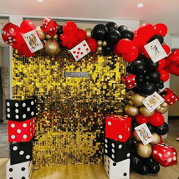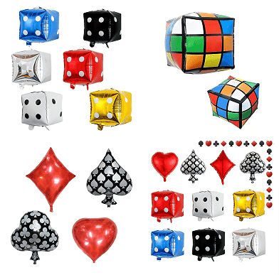 Kazino folijos balionai yra kazino tematikos arkos apdaila. Naudojame sutirštintos kompozicinės plėvelės aliuminio folijos medžiagą, kuri pasižymi aiškiais raštais, ryškiomis spalvomis ir gali būti pakartotinai pripučiama, nuleidžiama ir laikoma. Juos lengva montuoti ir jie yra būtini elementarioms arkoms, sulaukia didžiausio publikos pritarimo. Jis gali būti derinamas su angliškų raidžių folijos balionais, tokiais kaip "CASINO", "GAME NIGHT", "VEGAS" ir kt. Taip pat galima pritaikyti renginių temoms ir jubiliejaus numerių folijos balionams, lanksčiai prisitaikant prie skirtingų renginių temų, kad būtų patenkinti išskirtiniai klientų dekoravimo poreikiai.
