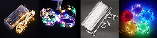 LED šviesos juostos, plastikinis vamzdelis, baliono puodelis, plunksna |