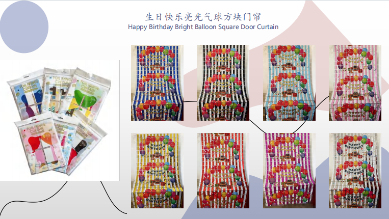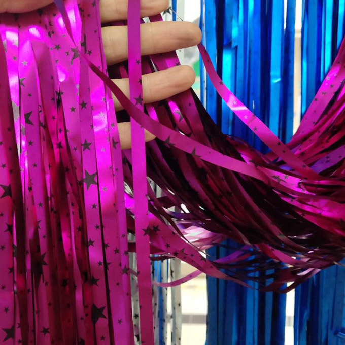 pavyzdžiui, folijos užuolaidą su nacionalinės vėliavos spalvos tema, kurią galima naudoti patriotinei veiklai, tokioms kaip Nacionalinė diena; Taip pat yra juodos ir baltos folijos užuolaidos su lenktynių tema, tinkama lenktynių teminėms vakarėliams ir kt.