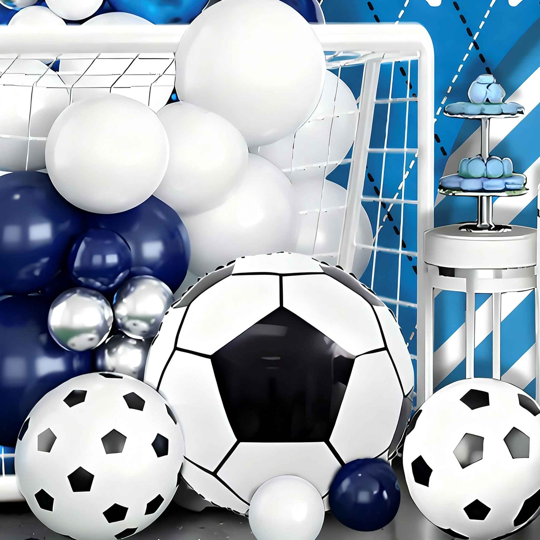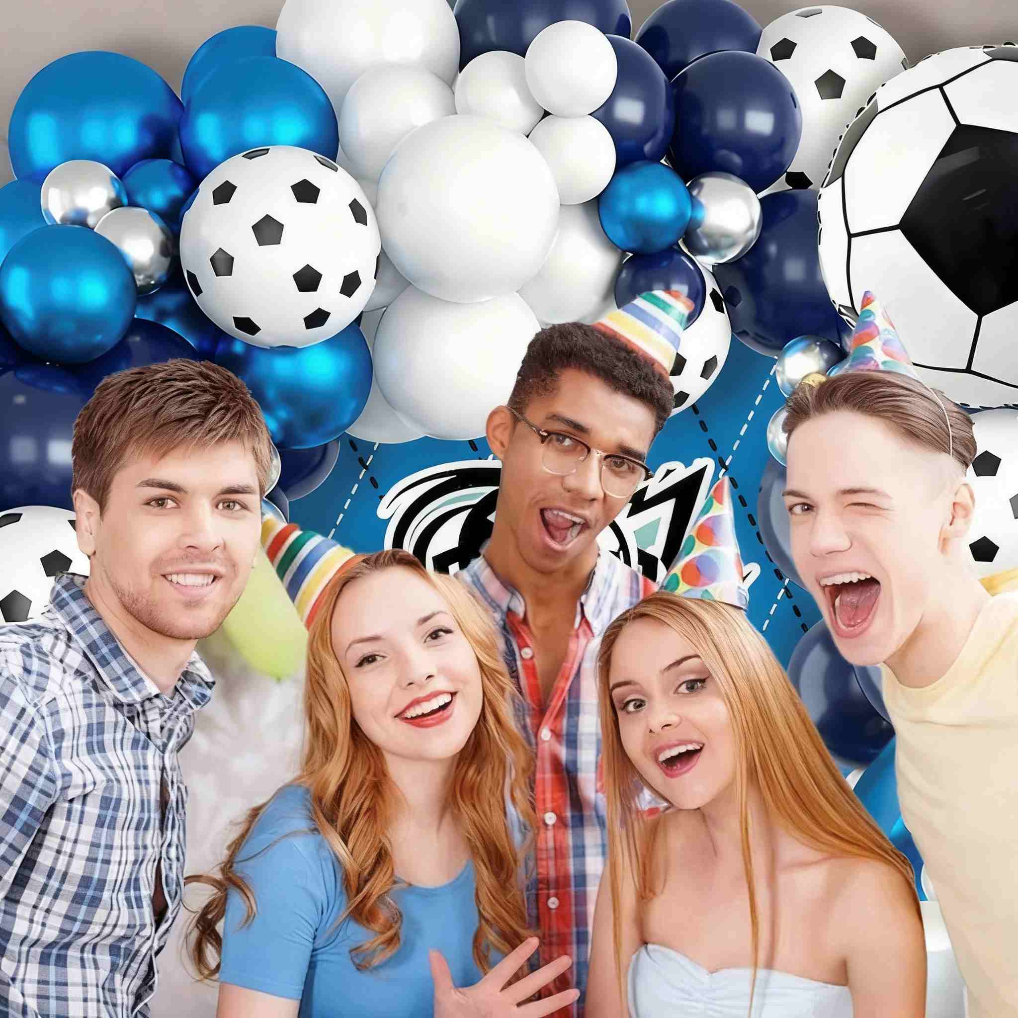 Ką gausite: Futbolo gimtadienio balionų arkos rinkiniai, skirti gimtadieniui, kūdikio šventei, šventiniam dekoravimui ir jubiliejaus dekoravimui viename rinkinyje.