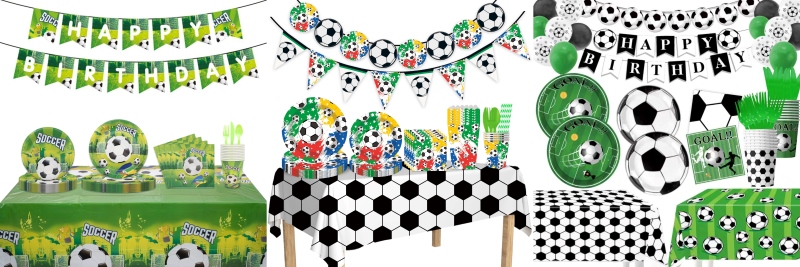 3. Be balionų, galite pridėti keletą futbolo tematikos vienkartinių stalo reikmenų, kurie taip pat bus labai naudingi.