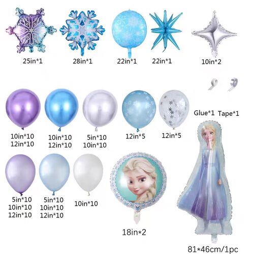 Folijiniai balionai yra pagrindinė Frozen tematikos balionų arkos rinkinio dalis. Jie daugiausia apima princesės galvos portreto folijos balioną, sniego senį folijos balioną. Taip pat galima pridėti skaičių folijos balioną ir raidžių folijos balioną, kad sukurtumėte aukštesnę vakarėlio atmosferą, tarsi norėtumėte gimtadienio vakarėlio stiliaus dekoracijų.