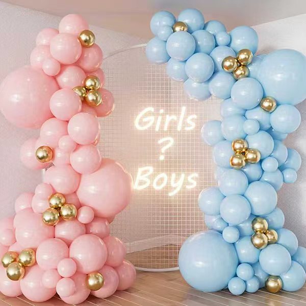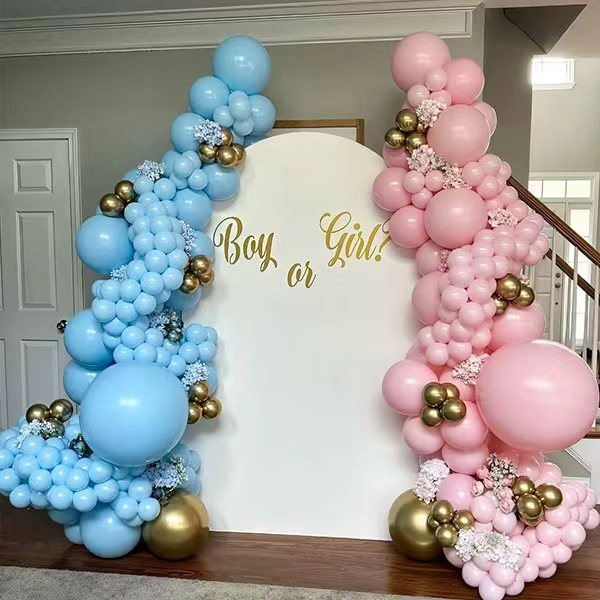 Gender Reveal Balloon Arch Set Šie rausvai mėlyni balionai tinka tiek iškilmingoms šventėms, tiek šiltiems susibūrimams. Jie puikiai tinka papuošti nuotraukų zonas, desertų stalus, įėjimus ar lauko erdves, akimirksniu sustiprina atmosferą ir lengvai derina įvairias vakarėlių temas – nuo elegantiškos iki kasdienybės.