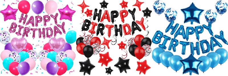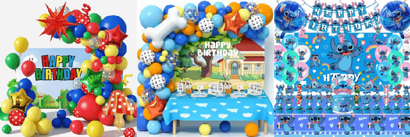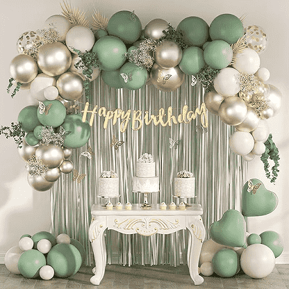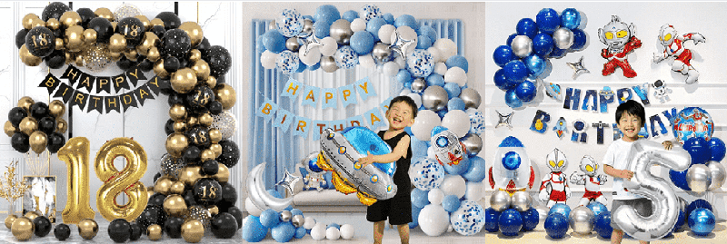 Pagrindinis stilius yra tos pačios arba papildomos spalvos latekso balionas Happy Birthday suSu gimtadieniu, folijos balionaiarbanumerio folijos balionai. Klasikiniai stiliai turi Macaroon miltelių gelio balioną rožinį Happy Birthday folijos balioną, juodą latekso balioną aukso numerio folijos balioną. Latekso balionai gali būti suverti į balionų grandinę ir pakabinti ant sienos arba lubų, o vizualinis centras yra folijos balionai ir nedidelis kiekis juostelės, kad greitai sukurtumėte paprastą ir tekstūruotą vakarėlio atmosferą.