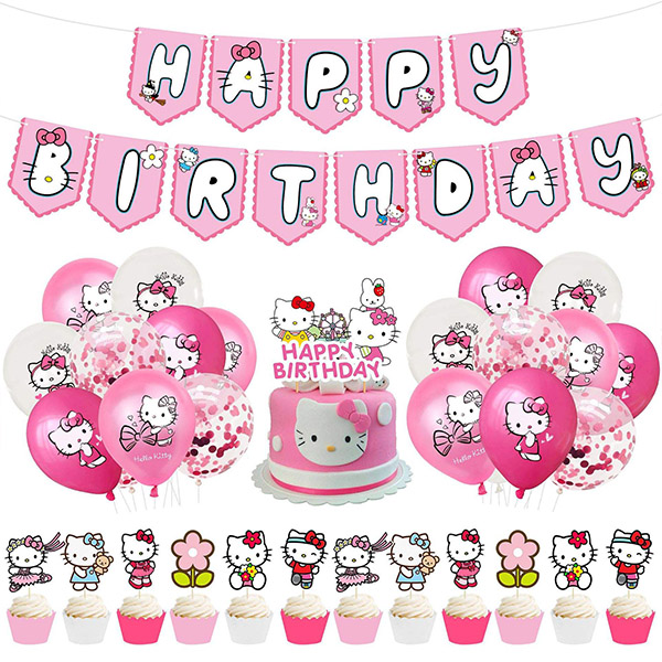 Hello Kitty Balloon tematikos vakarėlių reikmenys apima visą dekoravimo rinkinį, pritaikytą šventiniams vakarėliams, padedančius greitai sukurti šiltą, linksmą ir šventišką atmosferą.