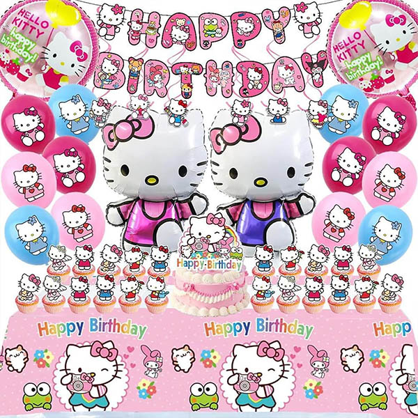 Šį „Hello Kitty“ teminį latekso balionų vakarėlių rinkinį sudaro „Happy Birthday Banner“, „Cake Top Decoration“, „Hello Kitty“ tematikos latekso balionas ir „Cupcake“ viršutinė dekoracija. Visos šio paketo dekoracijos yra pagamintos iš aukštos kokybės medžiagų, su ryškiomis spalvomis ir gražiais raštais. Medžiaga yra stora ir nėra lengva sugadinti, o tai gali užtikrinti, kad pakuotės dekoracijos išliks geros būklės šventimo metu. Nesvarbu, ar tai šventė, gimtadienio vakarėlis, ar linksmas vakarėlis, šis animacinių filmų temų vakarėlių rinkinys yra idealus.