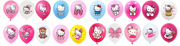 Nemokamas „Hello Kitty“ teminių balionų pavyzdys.