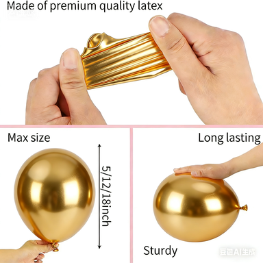 Latekso balionai, kuriuos siūlome skylutei viename balionų girliandos komplekte, yra pagaminti iš 100% natūralaus latekso, importuoto iš Pietryčių Azijos. Jų dydžiai yra 5 colių, 10 colių 12 colių ir 18 colių, juos išdėstant skirtingais dydžiais galima sukurti patrauklų sluoksniavimo efektą.