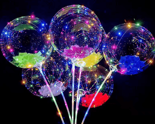 LED rankenos bobo balionuose pirmiausia yra LED lemputė, bobo balionas ir spalvų rankena.