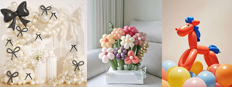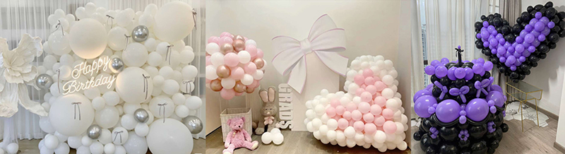 Skirtingi dydžiai gali būti naudojami kartu. Maži balionai gali būti naudojami kaip dekoravimo detalės. Dideli balionai gali būti naudojami baliono arka ar baliono girliandai. Poveikis atrodo stulbinantis. Kai naudojami su bobo balionais, metalinių spalvų balionais ar folijos balionais, išvaizda turi daugiau sluoksnių. Stilius tampa turtingesnis. Naudojimas labai platus. Jis gali būti naudojamas vestuvėse. Jis gali būti naudojamas gimtadienio vakarėliuose. Jis taip pat gali būti naudojamas atostogų renginiuose. Tai veikia kaip pagrindinė dekoracija arba detalių dekoravimas.