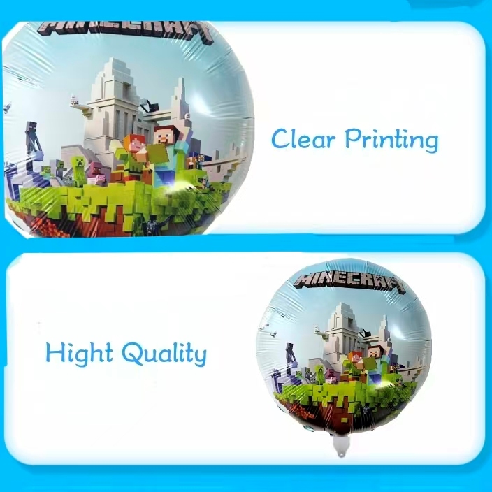 Šie folijos balionai naudoja sutirštėjusią foliją. Jie gerai laiko orą. Jie išlieka pilni nuo vakarėlio pradžios iki pabaigos. Medžiaga yra kieta ir sunkiai suplėšyta. Aštrūs daiktai juos lengvai pradeda. Jie išlaiko savo formą net gyvame vakarėlyje. Spausdinimui naudojamas ekologiškas rašalas. Spalvos yra ryškios ir lengvai neišnyks. Net po daugelio naudojimo būdų modeliai išlieka aiškūs. „Pixel“ detalės išlieka aštros. Jie suteikia žaidėjams ilgalaikę, saugią ir tikrą „Minecraft“ šventę.