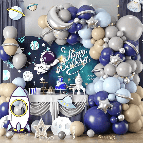 1. Kosminio astronautų vakarėlio baliono pavyzdys