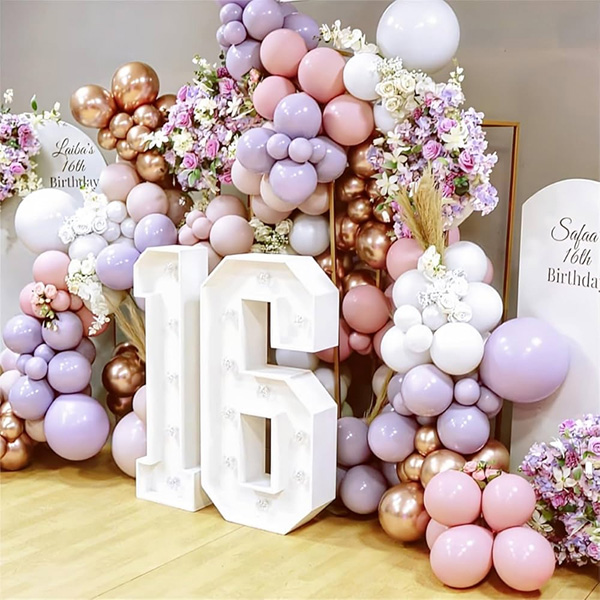 16-asis gimtadienis vadinamas saldžiu šešiolika ir yra monumentalus augimo taškas, simbolizuojantis tolesnį perėjimą iš vaikystės į paauglystę. Siekdami geriau padėti šeimoms surengti vakarėlius šiai ypatingai dienai paminėti, mūsų gamykla specialiai pristatė saldžią 16 balionų lanką, kad patenkintų vartotojų pirkimo poreikius. Šis girliandos arkos rinkinys susideda iš latekso balionų, folijos balionų, gimtadienio plakatų, balionų dėžučių, klijų taškų ir kitų priedų. Mūsų lateksiniai balionai yra pagaminti iš natūralios gumos, folijos balionai – iš aukštos kokybės aliuminio folijos medžiagos, o kiekvienas 16-ojo gimtadienio dekoracijų rinkinys yra kruopščiai tikrinamas, siekiant užtikrinti aukščiausius kokybės standartus. Balionas yra patvarus, atsparus sprogimui, nepriekaištingas ir tinka tiek oro, tiek helio užpildymui. Be šios baliono arkos, taip pat pagaminome baliono girliandos arką su 16 LED lempučių. 16 šviesos diodų lemputė padaro jūsų gimtadienį patrauklesnį, o galima rinktis iš trijų režimų, pavyzdžiui, LED. Taip pat turime 16 metų gimtadienio spausdinimo latekso balionų rinkinį. Šis rinkinys dažniausiai naudojamas 12 colių latekso balionuose. Raštas yra aiškus ir nėra lengvas sugadinti. Jis gali būti naudojamas ilgą laiką. Mes sukūrėme šiuos paketus, kad patenkintume jūsų poreikius įvairioms ir didelėms progoms tuo pačiu metu, suteikdami jūsų vakarėliui džiugios atmosferos.