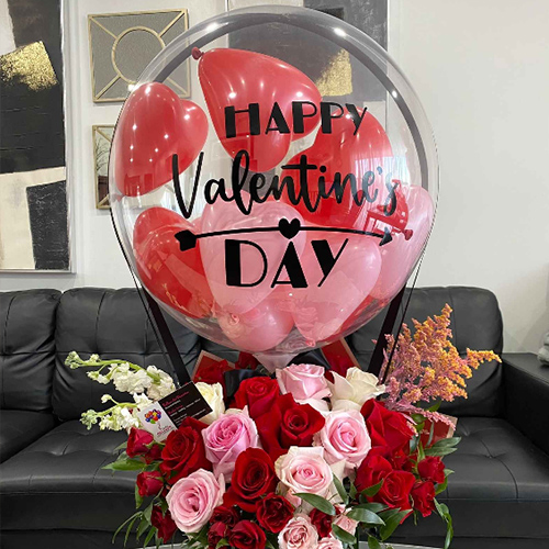 Sukūrėme Valentino dienos puokštės bobo balioną oro baliono formos su lipdukais ant korpuso. Galite priderinti prie mūsų gamykloje gaminamo balionų pildymo aparato, į balioną įdėti rožines rožes, amžinas puokštes ar mielas lėlytes, o į dovanų dėžutę – romantikos ir staigmenos. Kaip Valentino dienos staigmena jūsų partneriui arba kaip stalo puošmena, šis Valentino dienos bobo balionas yra ir dovana, ir namų puošmena, kurioje pilna atmosferos jausmo.